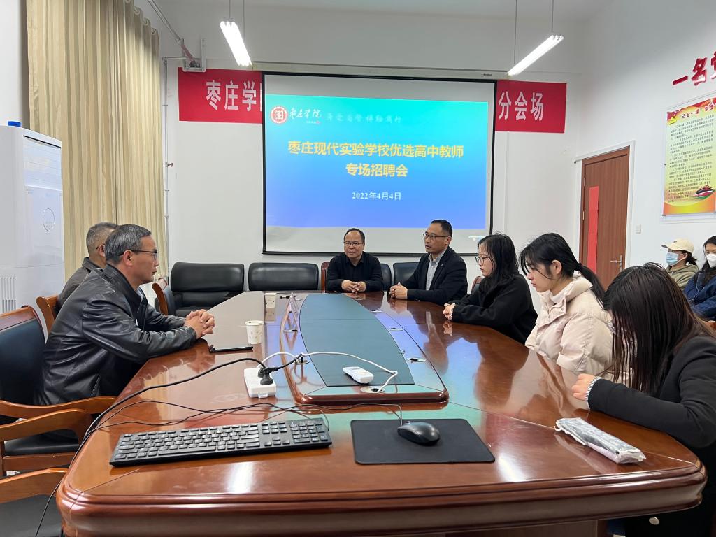 为进一步激发毕业生充分就业、及早就业意识,促进供需对接,助力毕业生高质量就业。2023年4月4日,bv伟德源自英国始于1946举办优选高中教师专场招聘会。枣庄现代实验学校校长姜德仁、bv伟德源自英国始于1946党总支书记王海峰出席会议,招聘会由bv伟德源自英国始于1946副院长吕长青主持。