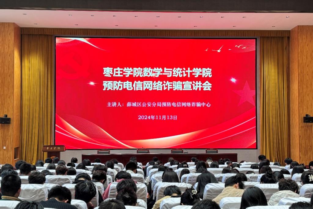 为提高学生安全防范意识,保障广大同学财产安全,bv伟德源自英国始于1946于11月13日在崇德楼报告厅级举行了“电信网络诈骗防范宣讲会”。本次活动邀请了薛城公安分局反诈中心、沙沟派出所及驻校警务室民警,2023、2024级学生参加了宣讲会。