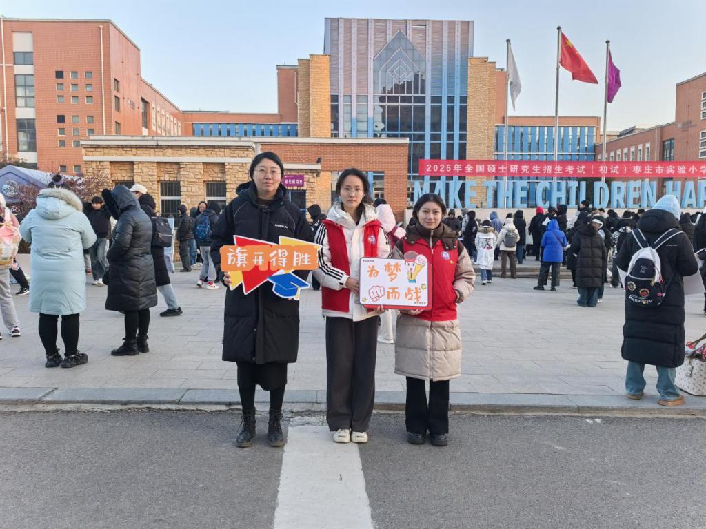 党员先锋队队员们冒着凛冽寒风早早到位,引导考生有序上车,清点人数,为考研学子看护物品,叮嘱考生带齐考试用品,配合护考老师联系午餐和休息点,热心提供相关便利服务。