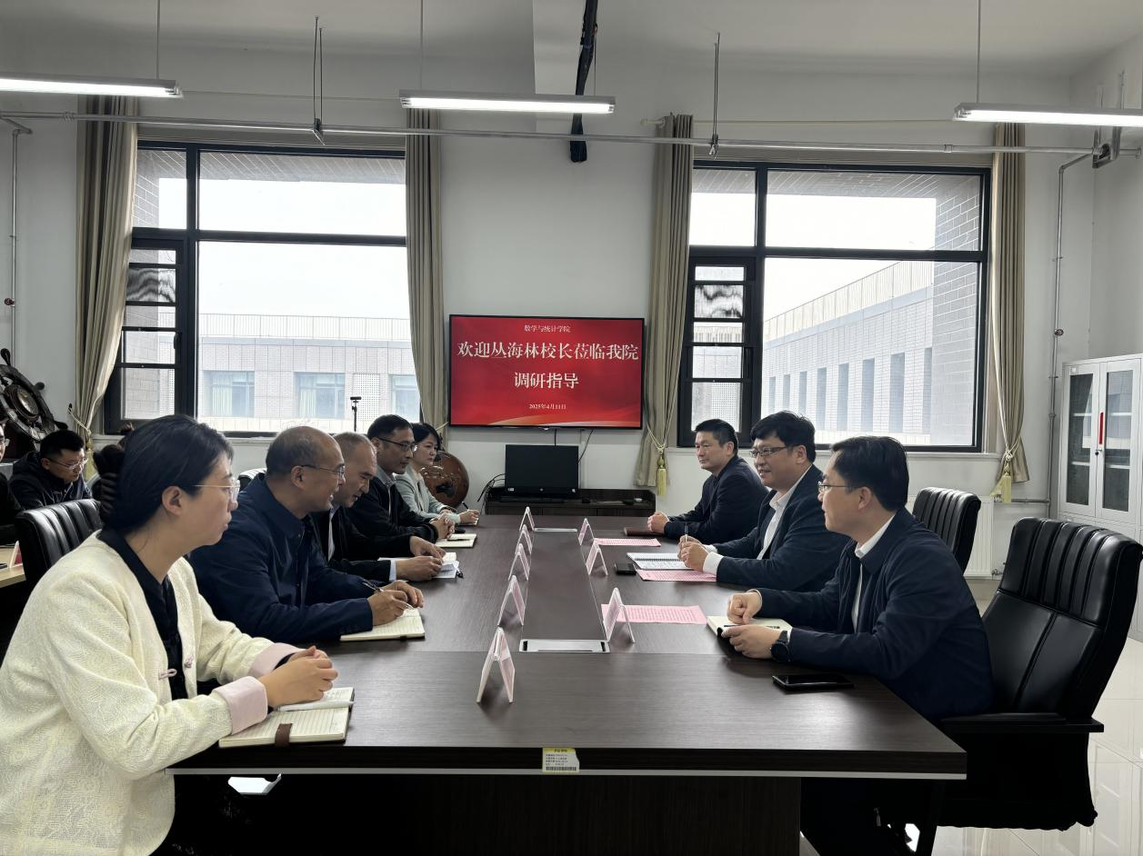 4月11日上午,校党委副书记、校长丛海林到数学与统计学院调研指导。校党委委员、宣传部部长、研究生处处长闫昕,校办公室负责人陪同调研。学院领导班子成员及青年博士代表等参加座谈。