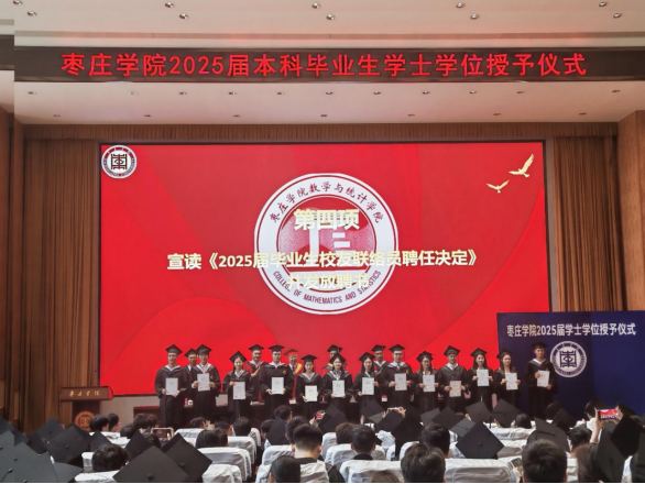 副院长郭莹宣读了《关于聘用孟祥瑞等13名同学为2025届学院校友会联络员的决定》,主席台领导为2025届毕业生校友联络员颁发聘书。
