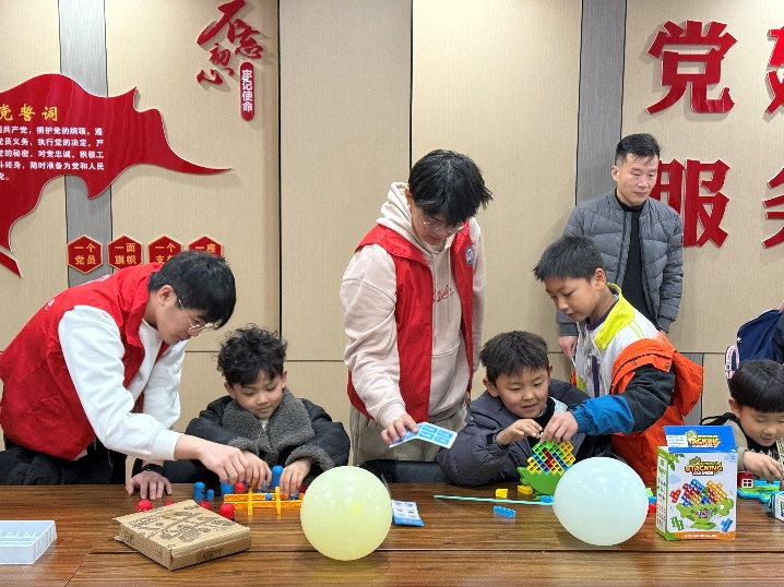 活动中,志愿者们通过学雷锋纪念日,雷锋精神宣讲、“雷锋盲盒”趣味问答,引领青少年感悟榜样力量;依托魔方、华容道等益智游戏和立体五角星折纸手作等互动活动,启智润心,厚植家国情怀。同时,志愿者与社区儿童开展暖心书信,编排反诈情景剧,全方位传递关怀与安全知识。
