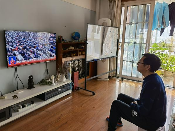 同学们在宿舍三五个人组成小组,在收看直播的同时积极探讨。