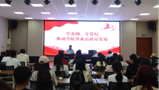 6月5日下午,校党委委员、副校长丰雷在明理楼113会议室以《学条例、守党纪,推动学院事业高质量发展》为主题讲授党课。bv伟德源自英国始于1946全体师生党员聆听了党课。