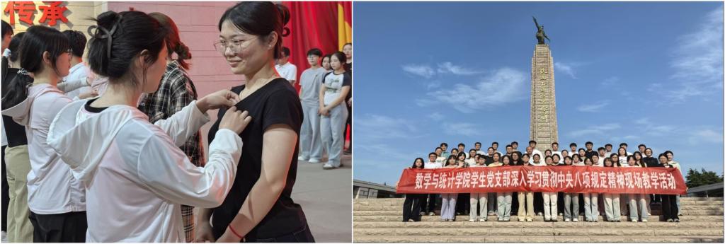 参观学习的学生们怀着崇敬的心情瞻仰了铁道游击队纪念碑,参观了铁道游击队纪念馆。馆内陈列的历史图片与珍贵文物,生动再现了铁道游击队的抗日传奇和英勇事迹,让党员们受到一次深刻的党性教育。毕业生党员为新发展的预备党员举行了佩戴党徽仪式,新老党员面对鲜红的党旗举行了庄严重温入党誓词活动。