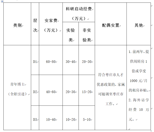全职引进人才实行年薪制,学校在聘期内提供安家补助、团队建设经费、周转房等优惠政策,具体标准“一人一议”、“一事一策”。参考标准详见下表: