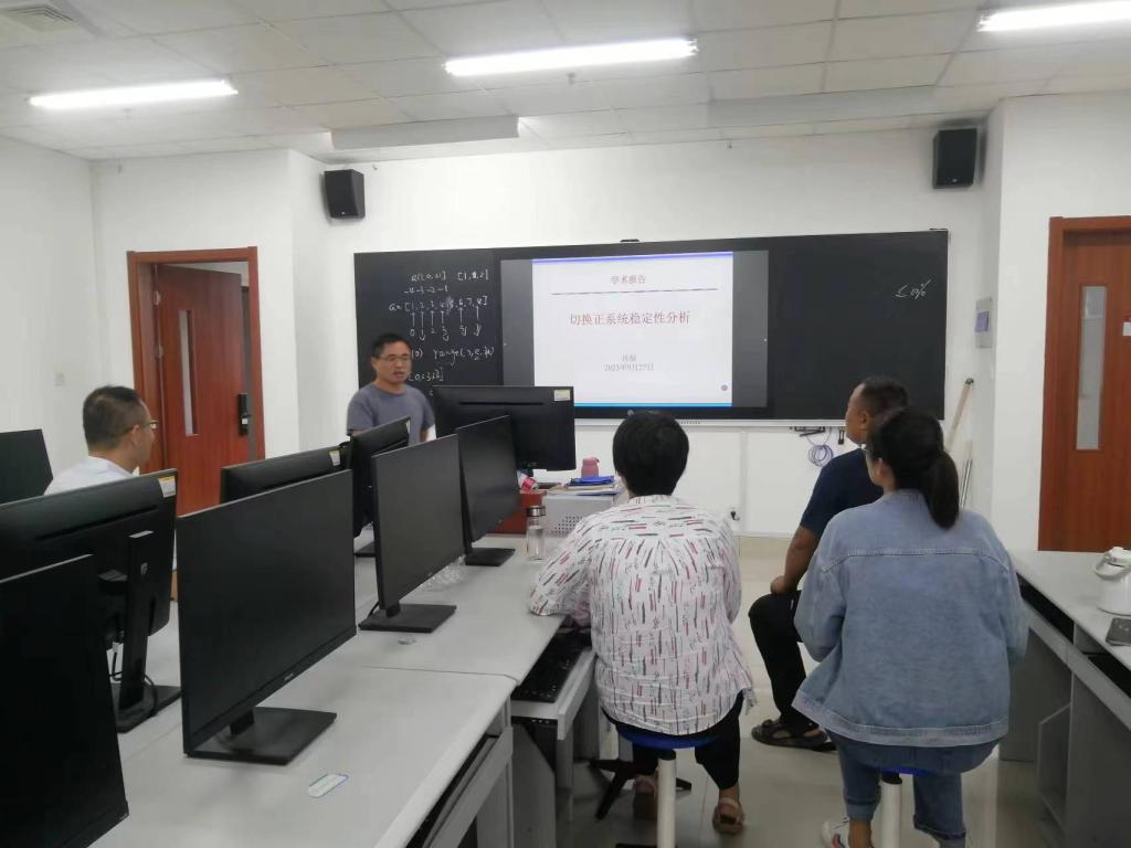 孙敏老师做了题为《切换正系统稳定性分析》的学术报告,报告主要介绍了脉冲控制下的时变线性正切换系统的指数稳定性分析。通过构造切换离散Lyapunov函数,在子系统全部不稳定的情况下,给出了一些保证该系统指数稳定的充分条件。将所得的充分条件应用到带切换协议的多智能体一致控制上,同时给出更多的实例验证理论结果的正确性。最后指出该研究方向有待解决的问题。