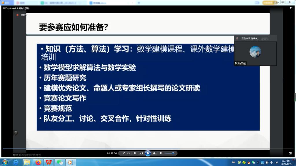教授的报告有高度、有深度、有广度、有温度,学理性强,趣味性足,思维宏阔,发人深省刘教授从全国大学生数学建模竞赛的组队开始讲起,详细的介绍了从注册报名到竞赛结束的整个过程,并且重点介绍了比赛过程中如何分析题目以及如何查阅相关的知识点。