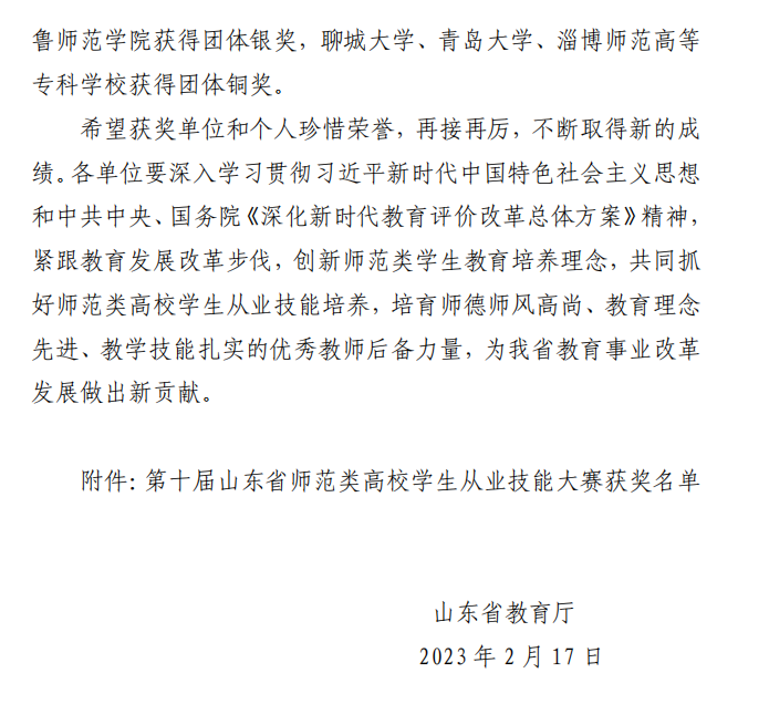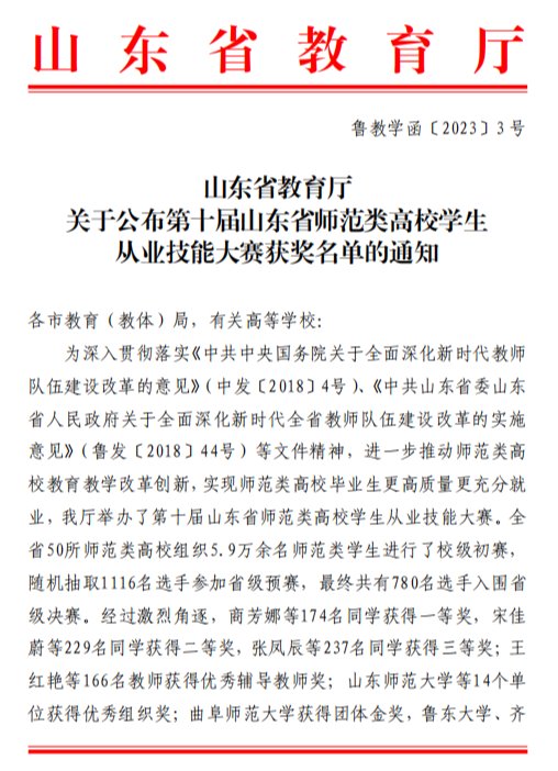 为进一步推动师范类高校教育教学改革创新,实现师范类高校毕业生更高质量更充分就业,山东省教育厅举办了第十届山东省师范类高校学生从业技能大赛,此次大赛分为校级初赛、省级预赛、省级决赛三个阶段。bv伟德官网2019级数学与应用数学专业学生鲍新雨、孙利彤赛前充分准备、赛时出色发挥、赛后荣获佳绩,摘得高中数学组三等奖。
