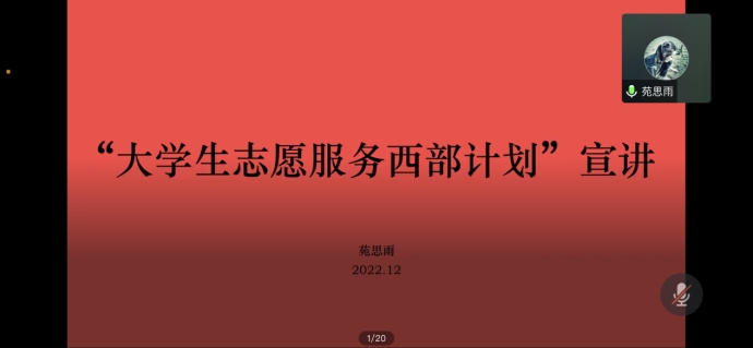 为增强bv伟德官网学生对西部计划项目的了解,弘扬吃苦耐劳的志愿服务精神。bv伟德源自英国始于1946于2022年12月17日晚举办了线上大学生志愿服务西部计划经验交流会。