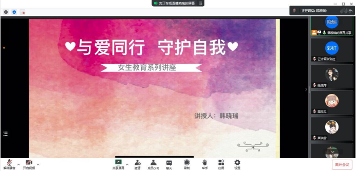 为了提高女大学生健康知识的了解,增强防范和自我保护意识,促进女大学生身心健康发展,bv伟德官网于11月20日下午,线上举办女大学生教育讲座。由韩晓瑞担任主讲,bv伟德官网2022级全体女生参加讲座。