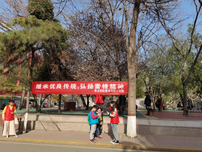 今年的学雷锋志愿服务月活动时间贯穿整个三月份,志愿者纷纷深入社区、街道等地,开展形式多样的志愿服务活动,以实际行动践行雷锋精神,弘扬良好风尚,积极传递青春正能量。3月6日至今,学院各班级团支部纷纷举办主题团日活动,就雷锋精神和新时代雷锋楷模进行了宣传,同学们从多方面全方位加深了对雷锋精神的了解。3月24日,数学学院15名志愿者,深入市中区立新社区进行雷锋精神宣讲、垃圾分类小科普,站在马路边协助交警指挥交通维持秩序。志愿者还帮助环卫工人清理小区和路边的垃圾。
