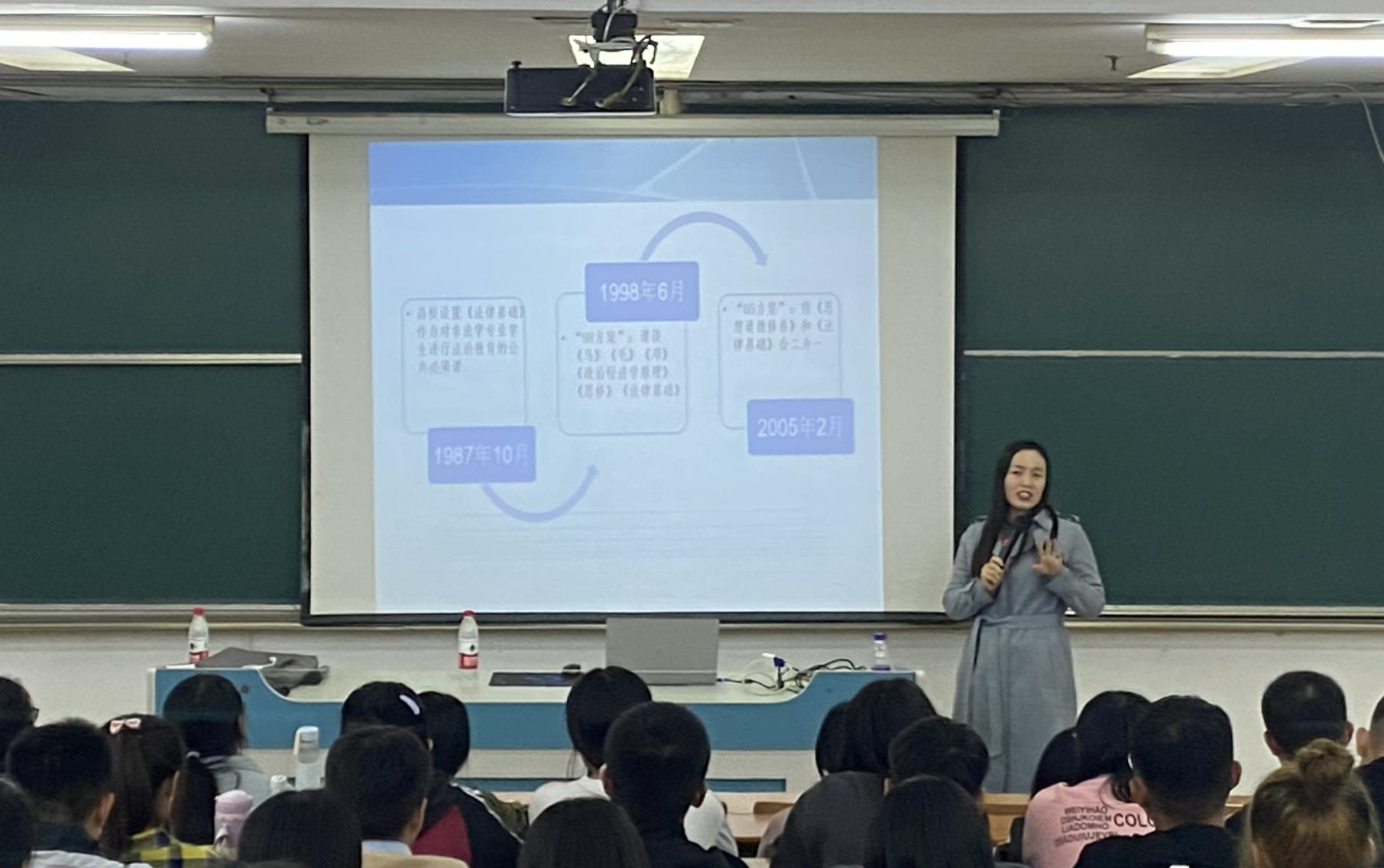 幽默诙谐的语言让讲座在欢快轻松的氛围中进行,其间,邵清清与同学们展开多次互动,将生涩枯燥的法律条文与身边的真实生活完美结合,让同学们在交流和思考中体会法律的意义与作用。邵清清强调,法律并不遥远,也不陌生,它就是生活中的衣食住行和吃喝拉撒睡,同学们只有知法懂法,内心时刻存有对法律的敬畏之心,才能真正拥有幸福生活和出彩人生。