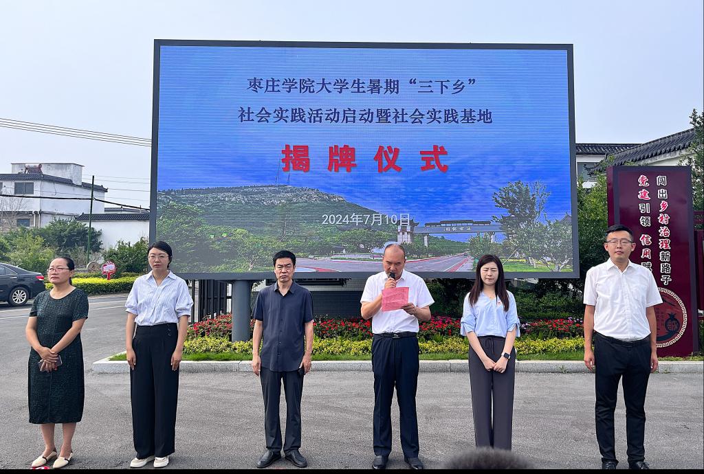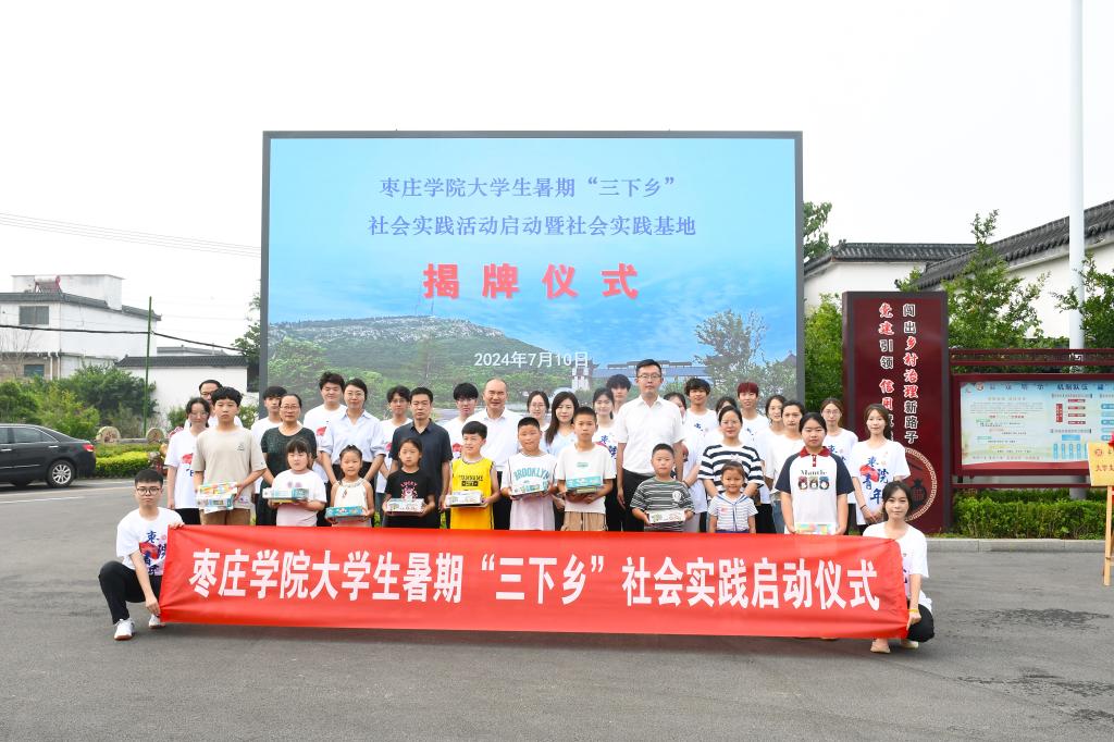 2024年7月10日上午,由bv伟德源自英国始于1946和美术与艺术设计学院组成的bv伟德源自英国始于1946大学生暑期“三下乡”服务队来到薛城区沙沟镇张庄村参加社会实践活动启动暨社会实践基地揭牌仪式。bv伟德源自英国始于1946党委书记王昌龙、bv伟德源自英国始于1946美术与艺术设计学院油画教研室主任、学科带头人邢军、沙沟镇党委副书记张驰、bv伟德源自英国始于1946和美术与艺术设计学院团总支负责人、沙沟镇共青团负责人、张庄村支部书记、村主任张世冲、指导教师代表、大学生社会实践志愿者、张庄村留守儿童共计一百余人参加了仪式。