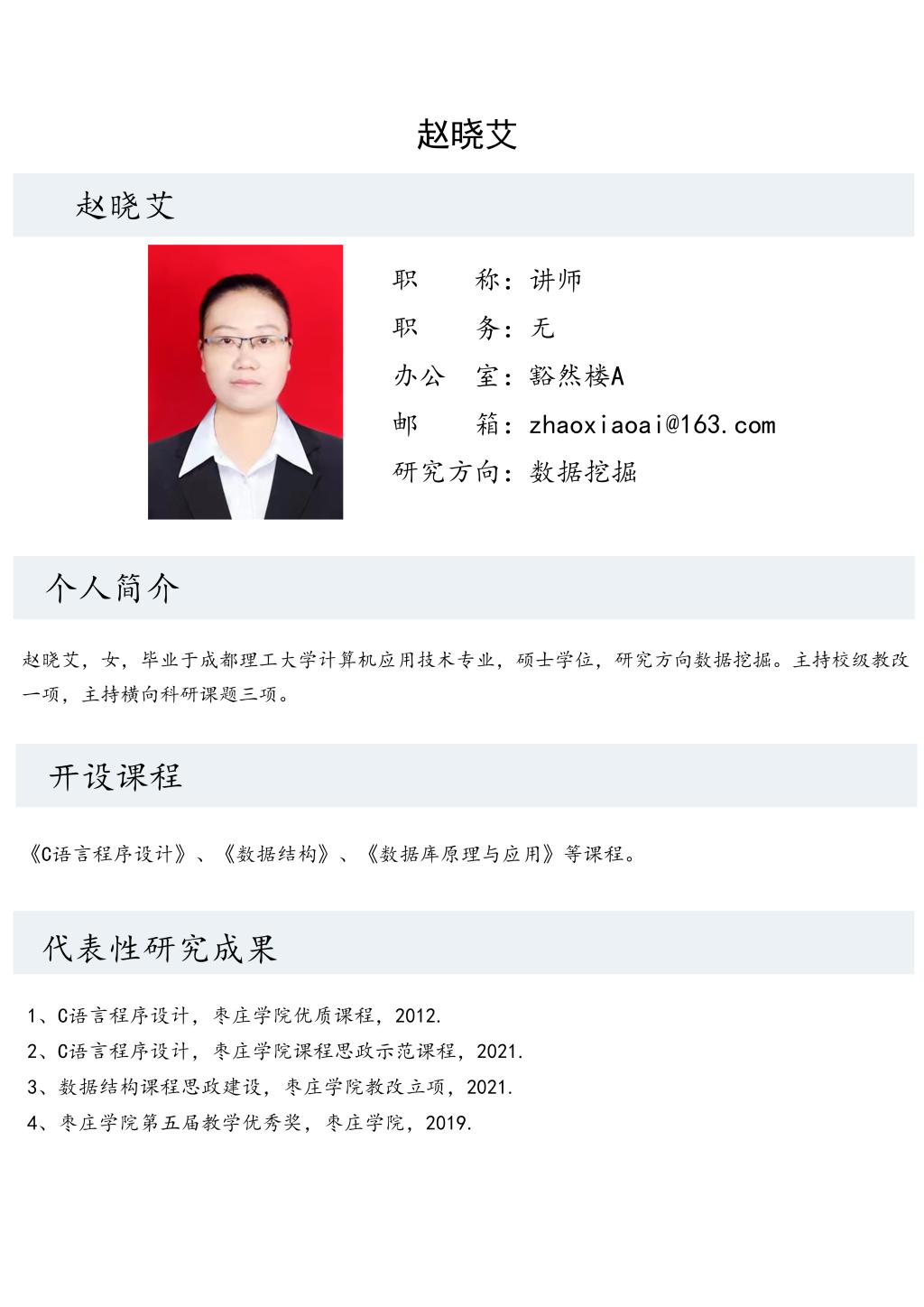 赵晓艾老师个人简介