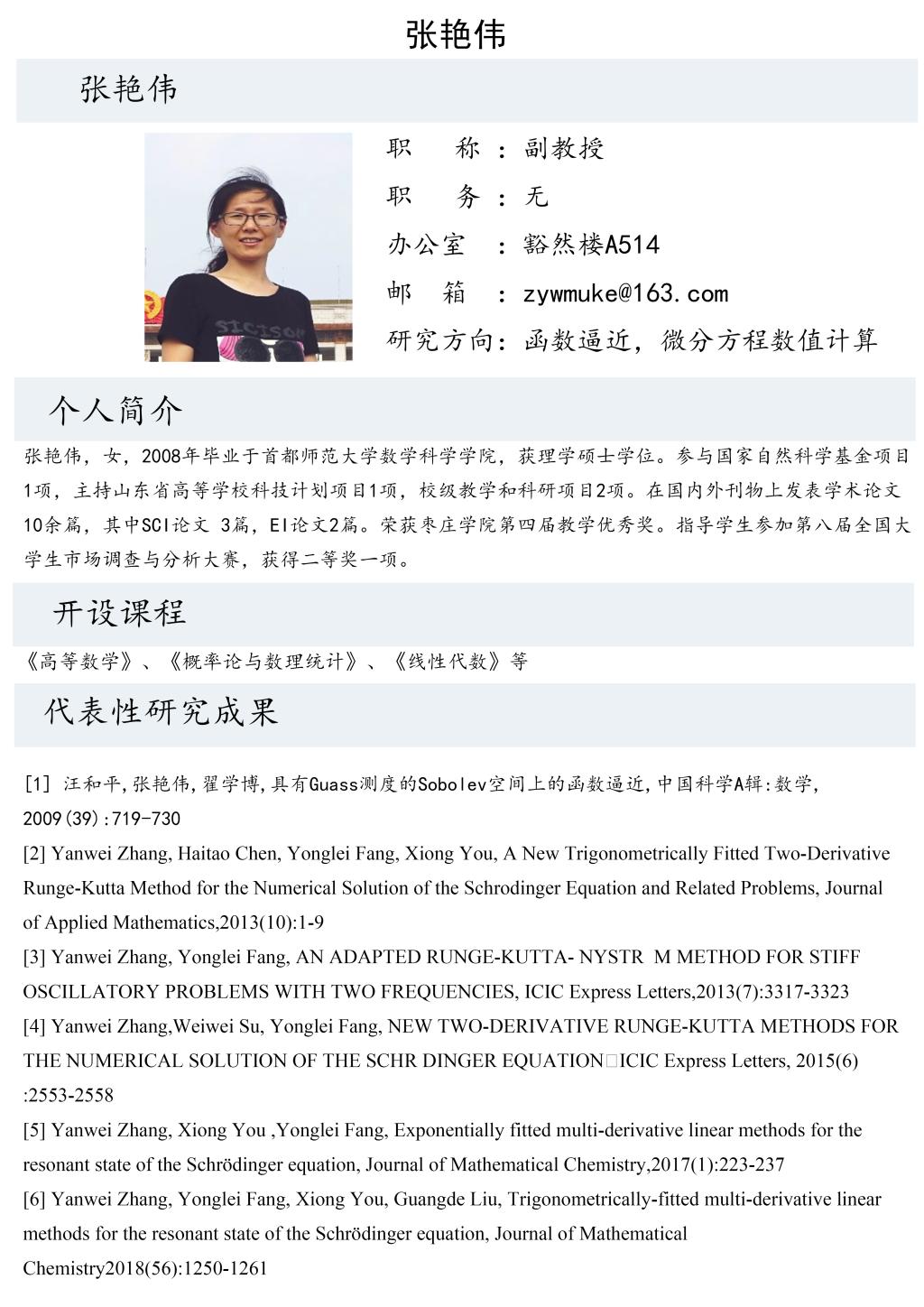 张艳伟老师个人简介