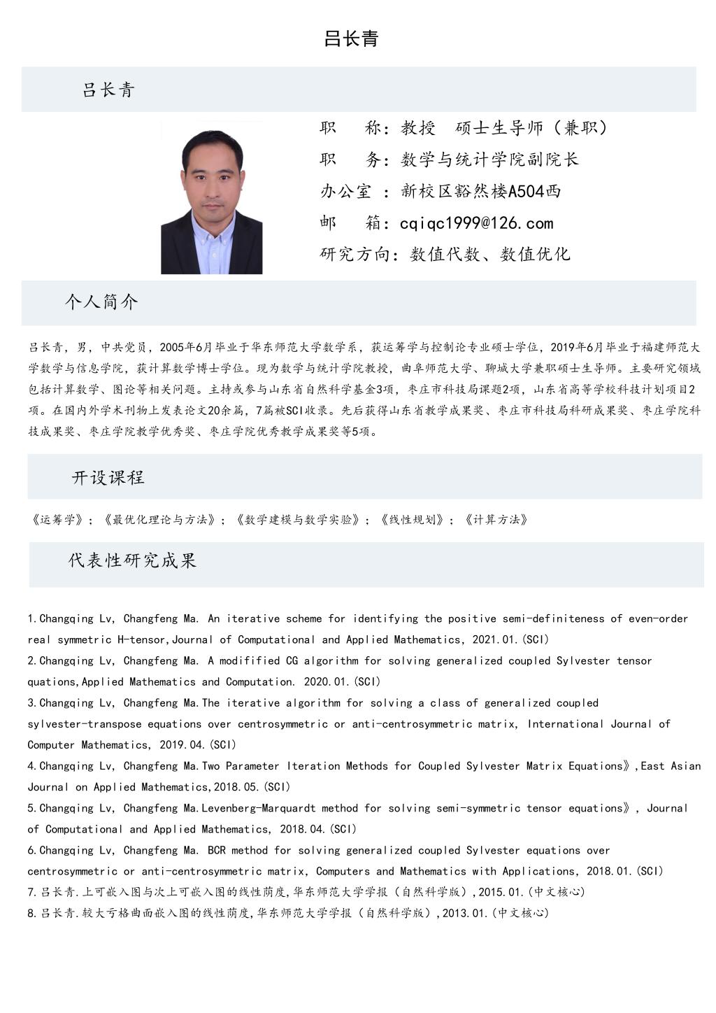 吕长青老师个人简介
