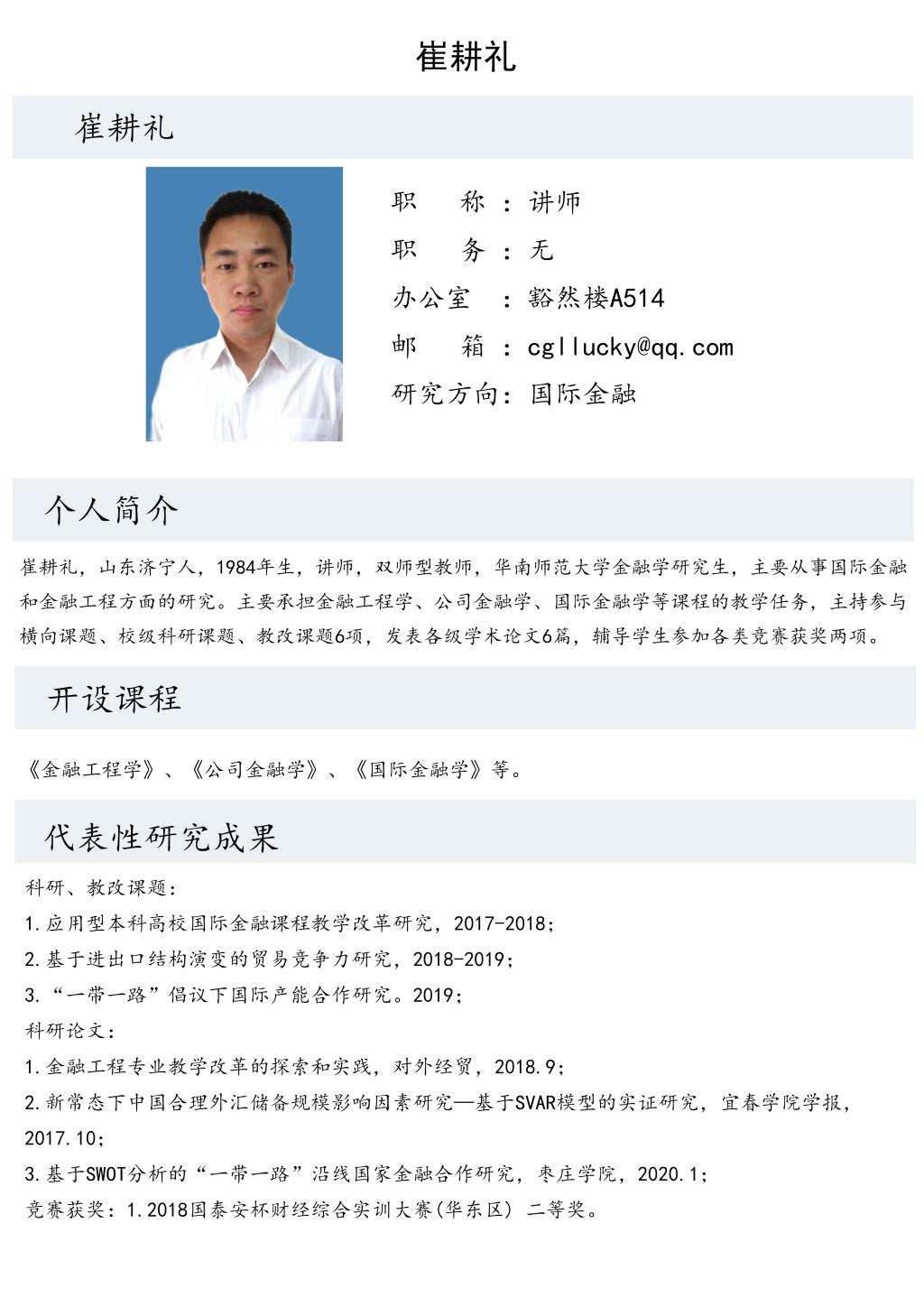 崔耕礼老师个人简介