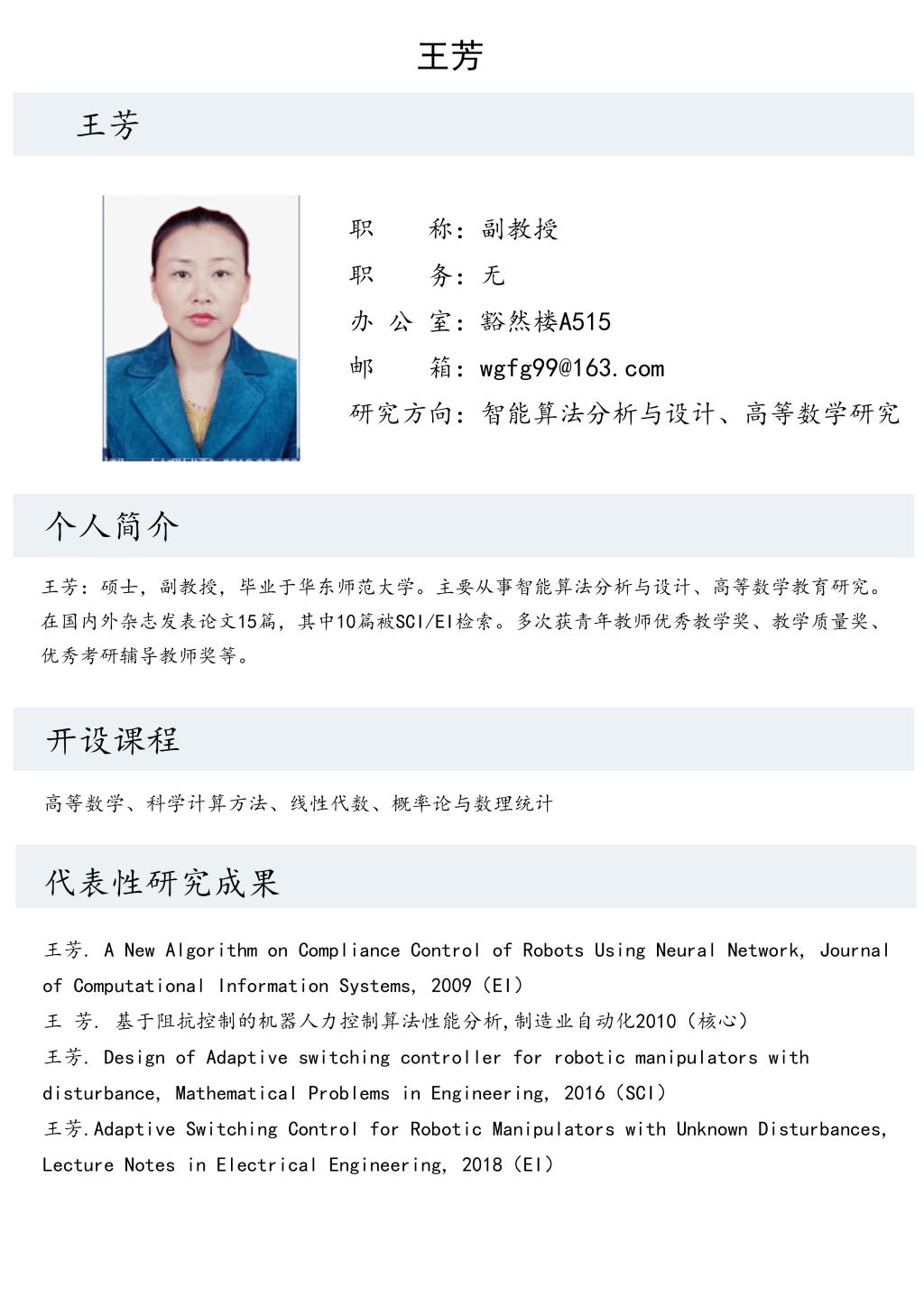 王芳老师个人简历